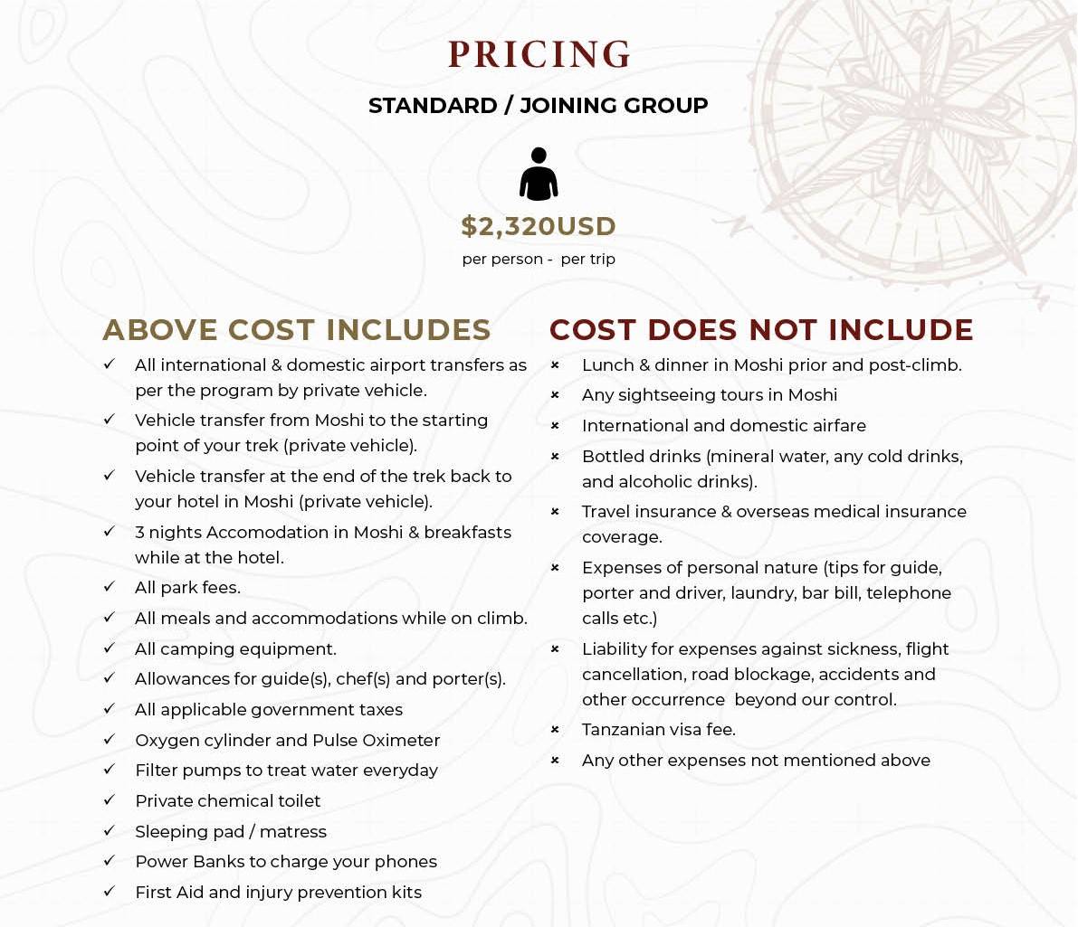 - Transport: To & From the mountain